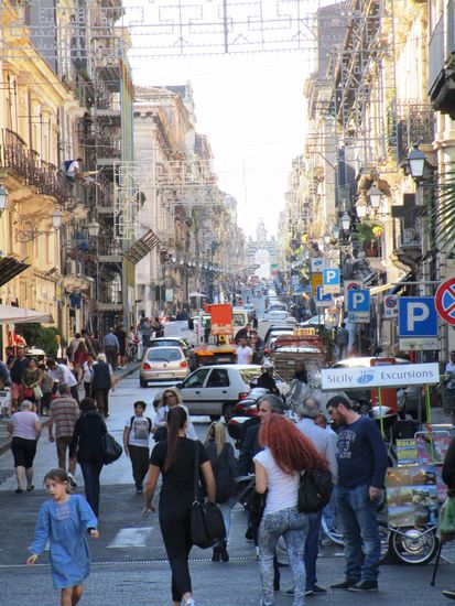 Der Wiederaufbau im 18. Jh. nach Plänen von Giovanni Battista Vaccarini ließ Catania in seinem heutigen Erscheinungsbild wieder aus dem Boden entstehen. Auch wenn der verwendete Lavastein oft düster wirkt, so pulsiert die Stadt heute voller Leben und viele junge Menschen, Studenten und Touristen tummeln sich in den Straßen.