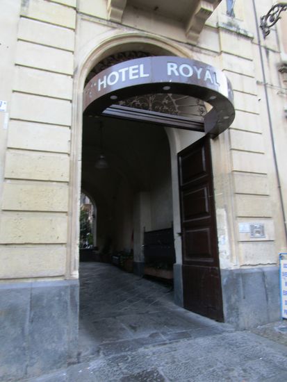Gegen 17 Uhr – eine Stunde Verspätung – landen wir in Catania, wo Diego, unser Taxifahrer vom Hotel, auf uns wartet. Ziemlich flott bringt er uns in unser Hotel, Hotel Royal, im historischen Zentrum von Catania. Das Hotel ist in einem alten Palazzo. Jedes Zimmer ist anders eingerichtet. Abgesehen davon, dass mein Zimmer total überhitzt ist, ist die Ausstattung sehr schön. Und ich bin froh, eine Badewanne zu haben. Baden tut meiner kaputten Wirbelsäule immer gut.