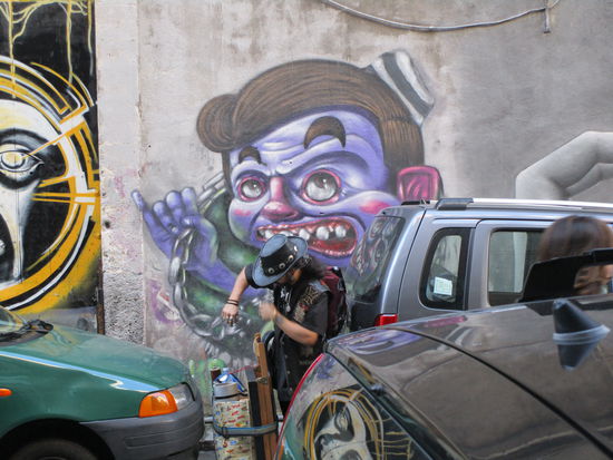Gut, dass ich meinen super Stadtplan dabei habe. Da sind alle kleinen Gassen und Vicoli eingezeichnet. Zur Sicherheit fragen wir noch eine alte Dame nach dem richtigen Weg, damit wir keine Umwege laufen. Was uns auffällt, hier sind fast alle Häuser bekritzelt, einige allerdings auch schön bemalt. Also Foto machen.