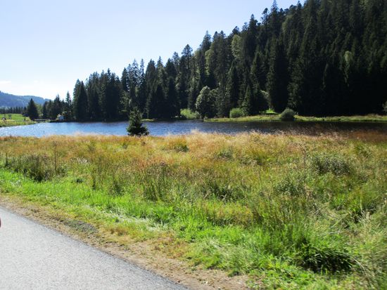 Hachimette, D 48 Orbey, Lac Noir – kurzer Halt. Der See ist von einer wilden Wald-Landschaft umgeben.