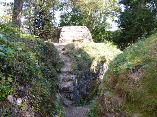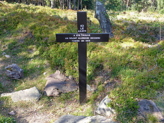 04. August 1915: Ein deutsches Artilleriefeuer von ungeheurer, noch nicht erlebter Gewalt beginnt; Hagelstürme der Granaten 74, 77, 105 fallen unaufhörlich auf die französischen Linien nieder; die Granaten 150 und 210 zerstören selbst die großen Tannen; auf dem Kamm fallen auf einer 200 m langen Front die Minen 170 und 245 mit mehr als 600 Stück pro Stunde auf die Franzosen nieder: