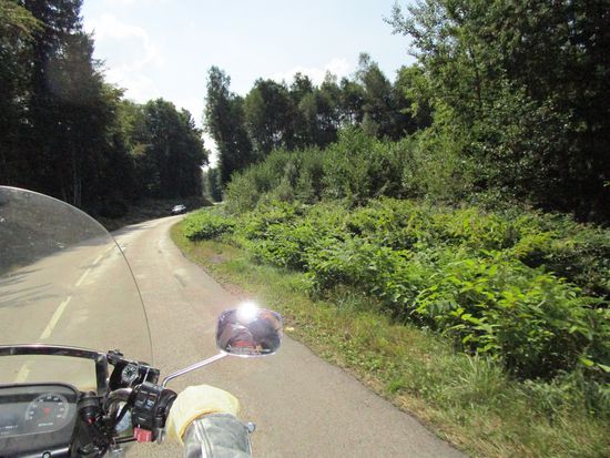 Nach 12.30 Uhr machen wir uns auf den Heimweg. D 50 bis Brouvelieures. Weiter N 420 über den Col du Haut Jacques, 606 m, mitten durch eine herrliche Waldlandschaft. Der Name des Passes erinnert an die Jakobspilger, die hier im 12. Jh. unterwegs waren.