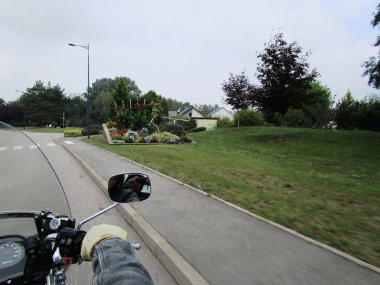 Gegen 12.30 Uhr verlassen wir Epinal. Und ich freue mich, wieder mal ein toller Kreisverkehr mit einem Brunnen. Das muss fotografiert werden, natürlich vom Motorrad aus, weil Rolf nicht überall halten will, wo ich etwas entdecke. Sein Argument, sonst kämen wir nie irgendwo an.