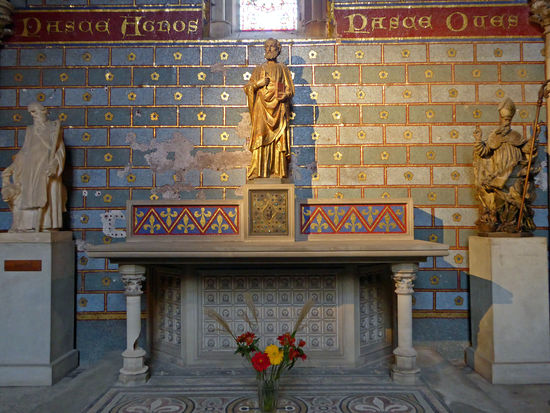 Im südlichen Querhaus befindet sich der neugotische Schrein der beiden irischen Mönche Columban und Gallus. Letzterer gründete das Kloster St. Gallen in der Schweiz.