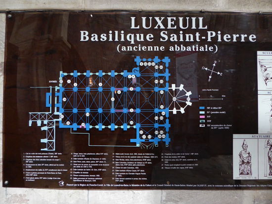 Der iroschottische Missionar Columban gründete Ende des 6. Jh. die spätere Abtei Luxeuil, die im 7. Jh. ihre Blütezeit erlebte. Der Kreuzgang aus dem 15. Jh. und andere Bauteile aus dem 17. und 18. Jh. sind noch erhalten.