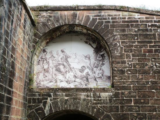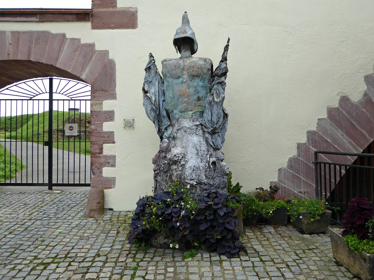 Nachdem Rolf von seiner Tour zurück kommt, überredet er mich, mit ihm noch einen weiteren Teil der Festung anzusehen. Dabei entdecken wir eine moderne Skulptur – Trophée - geschaffen 1990 aus Glasfasern, von Jean Claus. Irgendwie passt die Skulptur hier gut in die Festungsanlagen.