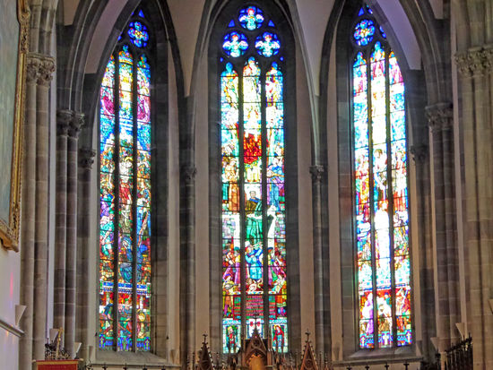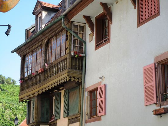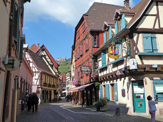 Überragt wird der Ort von den drei Burgruinen Ulrichsburg (Stammsitz der Herren Rappoltstein), Girsberg und Hohrappoltstein. Diese sehen wir später beim Verlassen des Ortes.