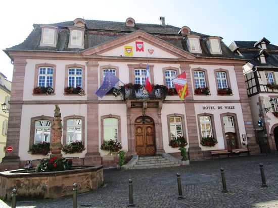 Als Hauptort der Herren von Rappoltstein wurde Rappoltsweiler schon im 8. Jh. erwähnt. 1290 erhielt es Stadtrecht und im 14. Jh. wurden die drei Stadtteile Alt-, Mittel- und Unterstadt mit einer Wehrmauer umeben. Als im 17. Jh. der letzte Herr von Rappoltstein starb, kamen Titel und Besitz an den Grafen von Pfalz-Zweibrücken. Dieser Pfalzgraf bestieg als Maximilian I. den Bayerischen Thron.