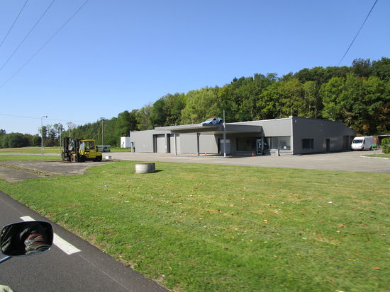 Bald biegen wir ab auf einen kleinen schmalen asphaltierten Waldweg mit 15 % Steigung. Abenteuerlich. Gott sei Dank kommt uns nur einmal ein Auto entgegen. Ich bin fix und fertig. In diesem einsamen Wald finden sich nur wenige bewohnte Häuser.