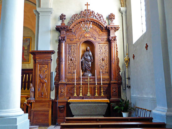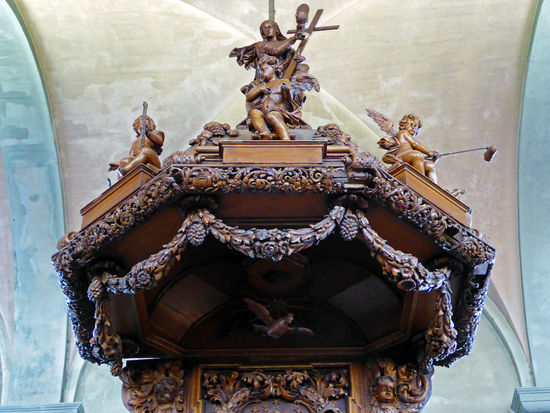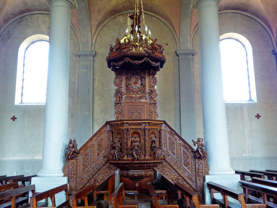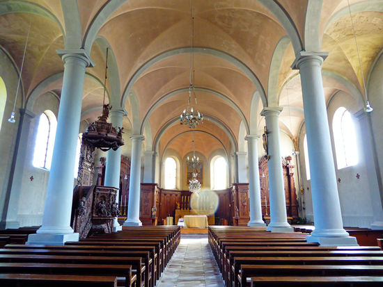 Nur die prächtige Kanzel, aus Eiche geschnitzt, ist im Original erhalten geblieben. Sie gehörte ursprünglich der Abtei von Lucelle, wurde während der Französischen Revolution verkauft und später unversehrt wieder gefunden. Die Kanzel und die Orgel der Kirche haben den Status eines Monument historique.