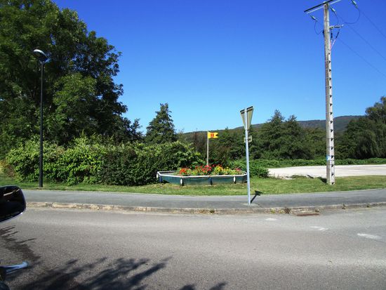 Weiter D 97, D 16 bis Plancher-Bas, D 4 Champagney – hier erblicken wir ein mit Blumen geschmücktes Boot am Ortseingang. Einfach toll, wie selbst die kleinen Orte das so schön herrichten.