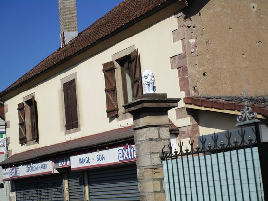 Weiter Ronchamp, N 19 bis Lure. Unterwegs sehe ich immer wieder kleine Löwen oder Adler auf den Eingangstoren größerer Häuser. Sieht toll aus.