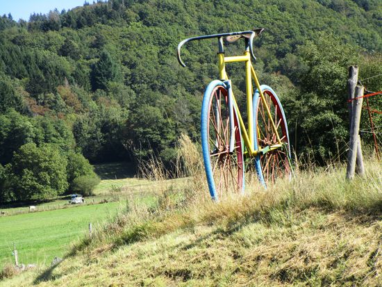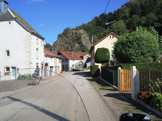 Wir verlassen Lure und fahren weiter. D 18 Lantenot. Dann mal wieder durch die Pampa. Das sind hier keine Straßen, nur asphaltierte Feld- oder Waldwege. D 292 Belmont, D 137 La Laterne-et-les-Armonts, D 72 Faucogney-et-la-Mer, D 6 La Longine. Ein wunderschönes Haus in blau-gelb fällt mir immer wieder auf. Leider gelingt es mir nicht, ein Foto zu machen. Rolf fährt zu schnell.
