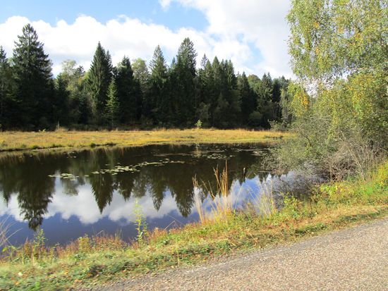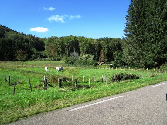 Route: D 486 über den Col de Croix, 678 m, Servance, D 315, über das Plateau der 1.000 Seen. Rolf wählt mal wieder einen Weg durch die Pampa, einsam, schmal. Viel Wald gibt es hier und immer wieder sind kleine Seen zu entdecken.
