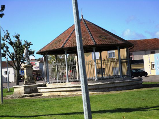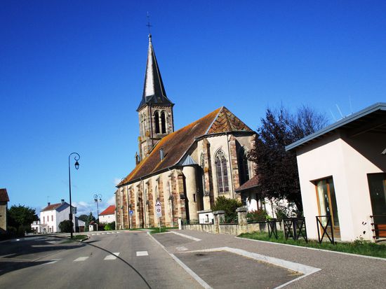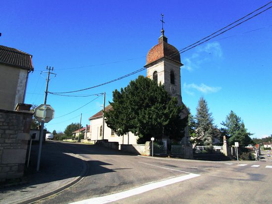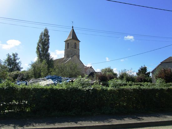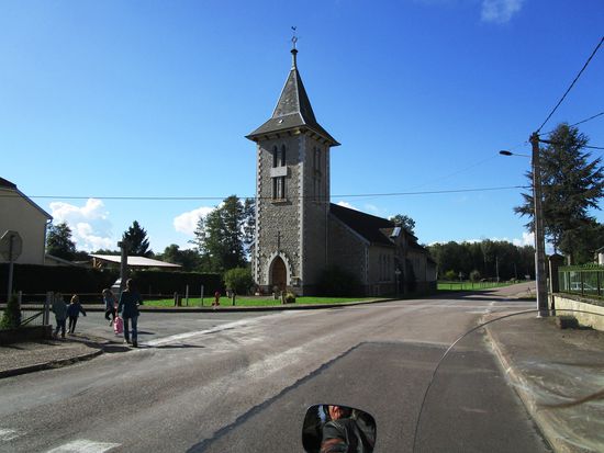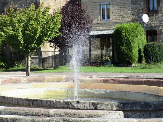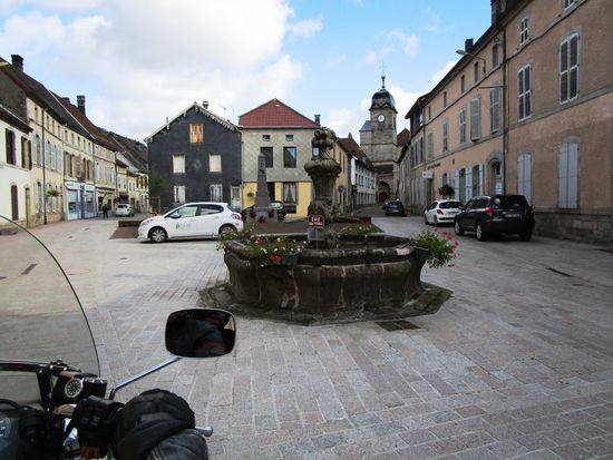 Halt in Chatillon sur Saone. Parken an einem Dorfbrunnen, mit Blick auf die Église de la Nativité de Notre-Dame, die aber geschlossen hat.