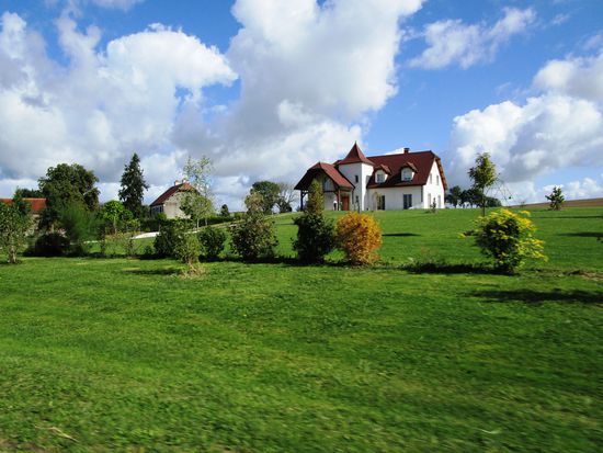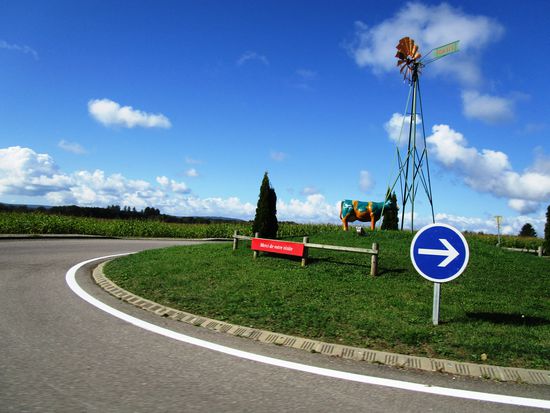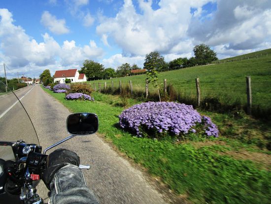 Es gibt überall viel zu erspähen. Ich versuche, einige Bilder zu machen, damit man miterleben kann, was wir unterwegs sehen: Schöne Häuser und Kirchen, oft ein Brunnen und hin und wieder ein altes Waschhaus. Langeweile kommt da nicht auf.