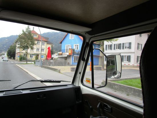 A 1 weiter Richtung Zürich. 11.20 Uhr – wir sind in Winterthur. Hier ist das Laub an den Bäumen schon sehr bunt – Herbst eben. 11.40 Uhr – Thurgau. Der Regen hat aufgehört. Und hier riechen wir um Herisau seit Wochen wieder mal die Gülle, einfach ekelhaft.