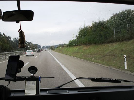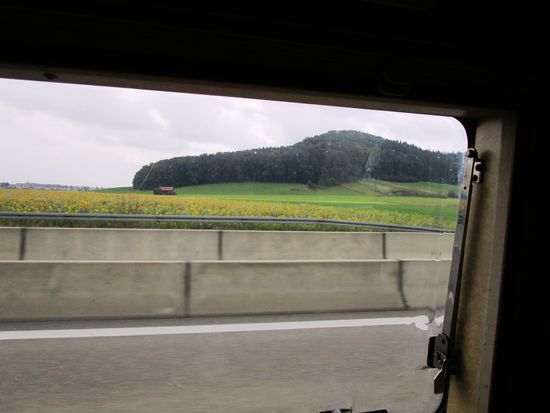 9.30 Uhr - bei Mülhausen biegen wir ab auf A 36 Richtung Basel. Weiter A 35 bis Basel. 9.50 Uhr – wir passieren die Grenze zur Schweiz. E 35 / A 3 Richtung Zürich, sehr viel Verkehr. Ferienzeit. Keine Sonne mehr, alles grau in grau. 10.10 Uhr - Es fängt an zu regnen.