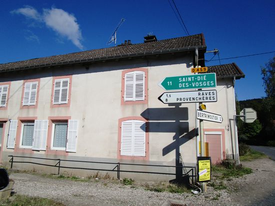 Weiter D 23 über La Croix aux Mines, Ban de Laveline. D 459 Raves, vorbei an dem schönen kleinen Rathaus. Weiter nach Bertrimoutier. D 420 Provenchères-sur-Fave.