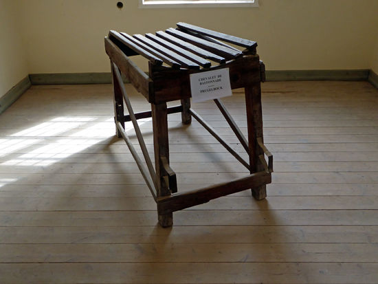 Erste Stufe: In einem hellen Raum mit Tageslicht bei Wasser und Brot, bis zu zehn Tage, mit bis zu 18 anderen Häftlingen zusammen auf etwa 2 m × 3 m. Ein Eimer zur Verrichtung der Notdurft pro Zelle.