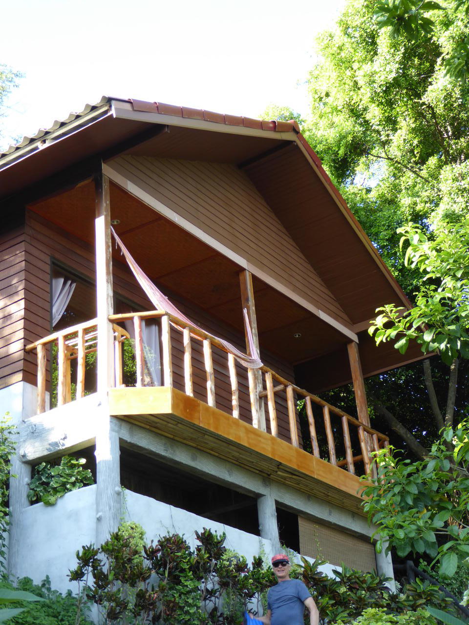 Das Seaview Resort lag außerhalb sehr schön auf einem Hügel an einer Straße, aber rundherum nur Wald. Das lautstarke Gezirpe der Zikaden empfing uns beim Aufstieg zu unserem Bungalow. Es verblüfft uns immer wieder, dass dieses Konzert wie auf Knopfdruck verstummt und nach einer bestimmter Zeit wieder erklingt. Mit dieser musikalischen Untermalung genossen wir die herrliche Aussicht und den Abend auf der Terrasse unseres gemütlichen Bungis.