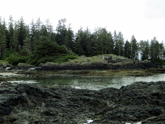 Im Nationalpark-Informationszentrum hole ich mir ein Tagesticket, das auch am Folgetag bis 16:00 Uhr gilt. Dann geht es zum Wickaninnish Beach. Am Südende gibt es Felsen und Tidenpools, die etliche Bewohner beherbergen.