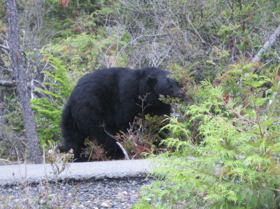 Irgendwie ist die Zeit sehr schnell vergangen und in Ucluelet ist die Lunchzeit schon vorüber. Wenigstens kann ich mir mal die Strände dort ansehen. Der Parkplatz am Little Beach ist gerade gesperrt, aber der nahe Terrace Beach ist auch vielversprechend. Beim Rückweg vom Big Beach begegne ich im Rainforest Drive einem Bären, der gerade genüsslich von einer Hecke am Straßenrand nascht. Von den vorbeifahrenden Autos lässt er sich überhaupt nicht stören.