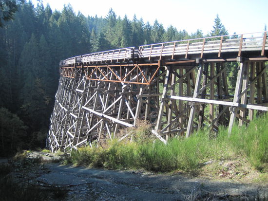 Heute möchte ich die Kinsol-Trestle erkunden. Das ist eine ehemalige Eisenbahnbrücke aus Holz und die größte ihrer Art im britischen Commonwealth. So fahre ich zur Renfrew Road, am Shawnigan Lake westlich vorbei. Von hier aus sind es etwa 2 km auf dem Fuß- und Radweg bis zu der Brücke. Dort angekommen nutze ich die Wege in das Tal, um auch einen Eindruck von unten zu bekommen.