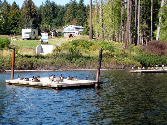 Wieder zurück fahre in in den kleinen Ort Shawnigan Lake am Ostufer des gleichnamigen Sees. Bei einem Imbiss bekomme ich ein gutes Lunch, Teriyaki Chicken. Ganz in der Nähe ist auch eine öffentliche Bootsrampe. Hier starte ich eine kleine Runde mit dem Paddelboard auf dem überschaubaren See.