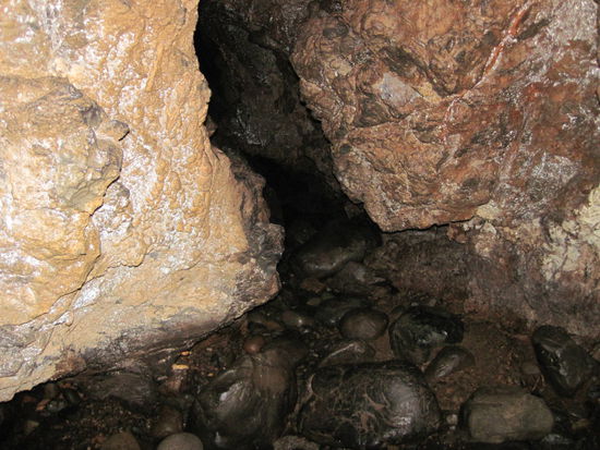 Danach möchte ich mir noch die Horn Lake Caves ansehen. Das ist ein Höhlensystem in einem Tuffsteingebiet. Allerdings ist nur ein kleiner Teil ohne Führung und Spezialausrüstung zugänglich. Abseilen durch einen Wasserfall war mir dann doch zu abenteuerlich. Der Weg führt über eine der typischen "Maschendrahtbrücken". In der zweiten Höhle kommt gleich nach dem Eingang ein unter Wasser stehender Gangabschnitt, hier kehre ich um.