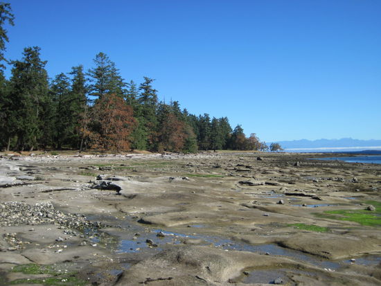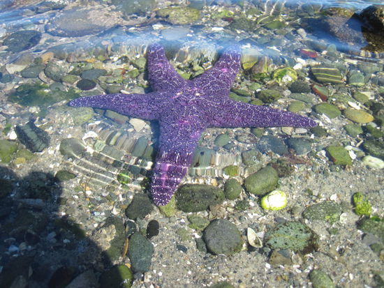Heute bin ich zeitig in Nanaimo, wo ich das Fährboot nach Newcastle Island nehme. Das ist eine größere Insel, auf der man schöne mehrstündige Wanderungen unternehmen kann. Es herrscht hier viel Bootsverkehr und dazwischen landen und starten noch Wasserflugzeuge. Dem Skipper des Fährboots sind die Wasserflugzeuge auch etwas unheimlich. Sein Boot hat eine Markierungsbake für die Flugzeuge, so dass es nicht übersehen wird. Auf Newcastle Island gibt es etliche Wanderwege. Es ist gerade Ebbe, da sind die Tidenpools mitsamt Bewohnern eine interessante Abwechslung.