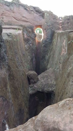 Die Kirchen sind alle miteinander über Tunnel und Felsengänge verbunden.