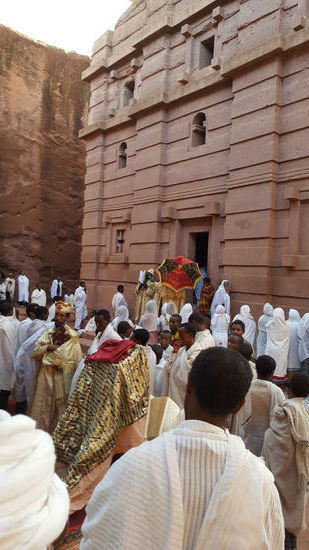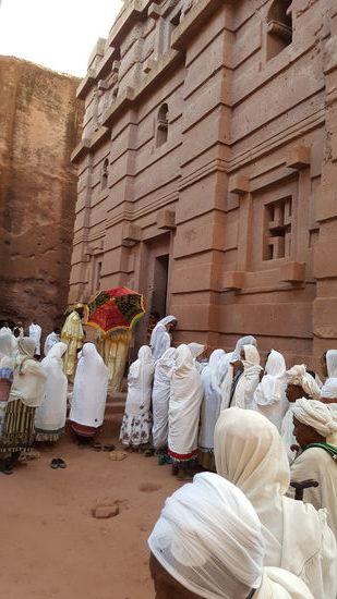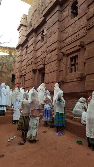 Bei den Felsenkirchen angekommen, hören wir den geistlichen Gesang und die unzähligen Gläubigen die hier stundenlang beten. Allesamt in weißen Tüchern gehüllt.