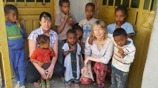 Da Sonntag ist, sind einige Kinder in der Nachbarschaft unterwegs. Einige treffen wir an. Sie freuen sich riesig über unsere Haribos und die Kleidung.