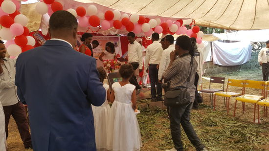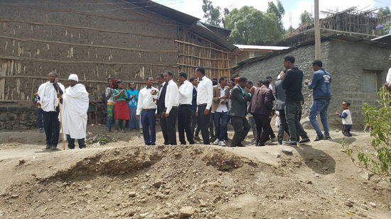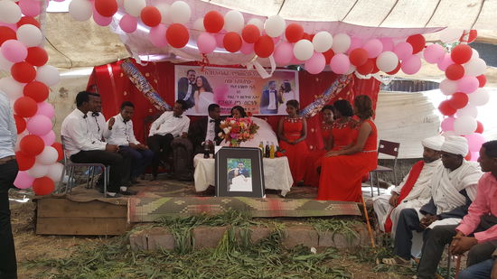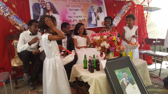 Zu so einer Hochzeit kommt der halbe Ort. Die Familien der Paare sparen jahrelang für so eine Feier. Es werden "Zelte" aufgebaut und es gibt Injera und jede Menge Bier.