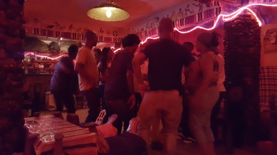 Am Abend gehen wir mit Happy in ein Lokal in dem der traditionelle Schultertanz gezeigt wird. Es ist eine gute Stimmung. Wir trinken das einheimische Bier "Dashen". Lecker. Es wird sich ein Spaß daraus gemacht auch uns zum Tanz zu animieren.