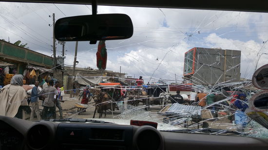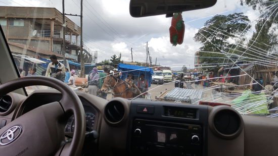 Da "unsere Jungs" noch nicht gefrühstückt haben, schleppen Sie uns in einen Bull Shop. Dort gibt es schon zum Frühstück reichlich Fleisch, insbesondere auch rohes Fleisch. Natürlich mit Injera. Wir nehmen nur einen Kaffee.