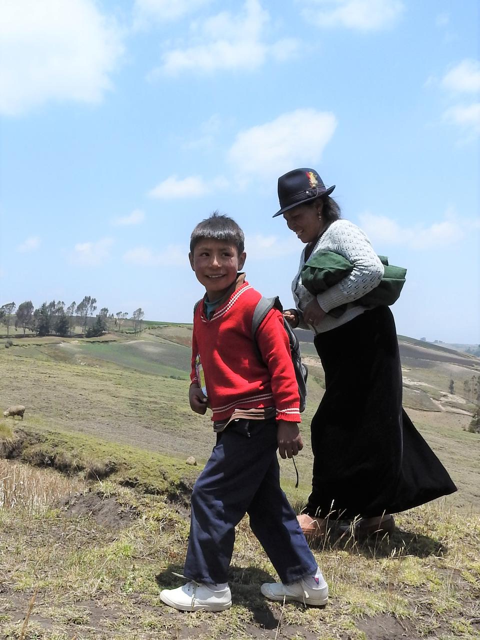Der junge Mann ist nach der Schule, in Begleitung seiner Mama, auf dem Weg zu seiner Großmutter. Er ist das letzte von 9 Kindern und hat einen täglichen Schulweg von jeweils 1,5 Stunden.
