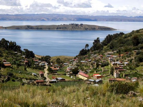 - Im Rücken: Yumani, das größte der Dorf der Isla del Sol