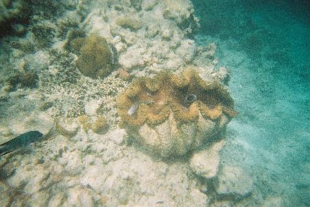 begegneten uns grosse Fischschwaerme, in allen moeglichen Groessen und Farben. Auch die Korallen und Muscheln waren ueberwaltigend. Besonders am Rand des Riffs, dort konnte man ca 6 Meter in die Tiefe schauen und konnte irre viel Leben auf einmal erblicken. Auch Seesterne und eine Art Octopus begegneten uns. Weiterhin "schmatzende" regenbogenfarbene Fische, die gerade an den Korallen ihr Mittagessen einnahmen. Ein weiteres Highlight waren