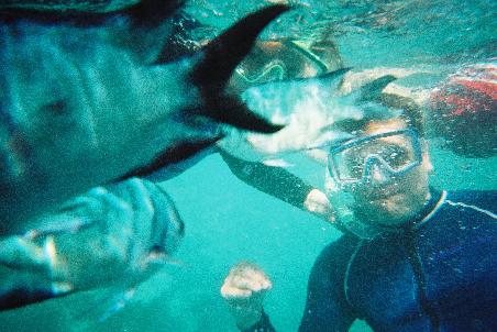 Nach einem kurzen leckeren Lunch an Deck ging es noch einmal ins Wasser. Und da war er, "George", der Riesenfisch, den wir aus dem U-boot heraus beobachtet hatten! Majestaetisch glitt er durchs Wasser und es schien so, als ob er einem zuzwinkern wuerde, er hatte ziemlich grosse Augen...Ralf gelang es dann auch, ihn zu streicheln! Ein einmaliges Erlebnis! Nach einer weiteren Tour bis ans Ende des gekennzeichneten Bereiches gingen wir wieder