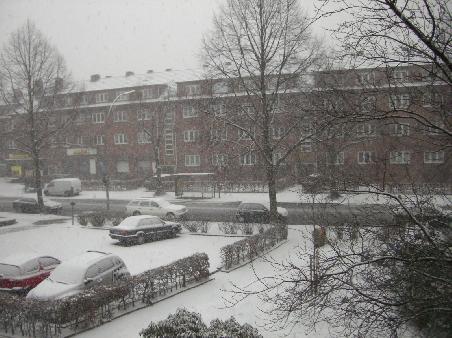Zurück in Hamburg: Es ist eigentlich schon Frühling, aber wie bei der Abreise im letzten Jahr, so ist es auch drei Monate später noch am Schneien....