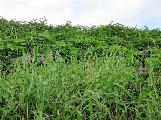 Früh geht es an die Hanalei Bay. Es regnet etwas und daher ist auf den Wellen noch nicht viel los. Ich paddle aber den Hanalei River aufwärts. Diesmal ist weniger Gegenströmung, daher komme ich gut voran. Am Ufer schauen etliche Nene (Hawaii-Gänse) recht interessiert.