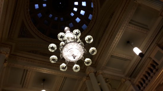Echtes Gold gibt es an den Wänden aus den Zeiten des Goldrausches und es gibt in diesem Saal wundervolle Waterford Kristall-Kronleuchter. Drei insgesamt