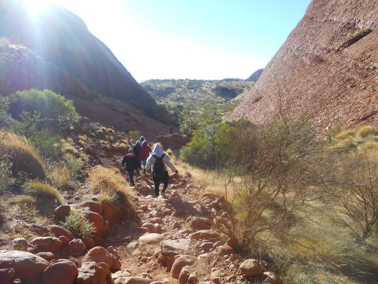 Kata Tjuta ist nichts für Weicheier, Phobiker jeglicher Art haben sowieso im Outback schlechte Karten. Der Trek war der härteste Trek im Outback. Während am Uluru Spaziergangs-Fitness ausreicht, kommen hier selbst die härtesten hardcore Sportler