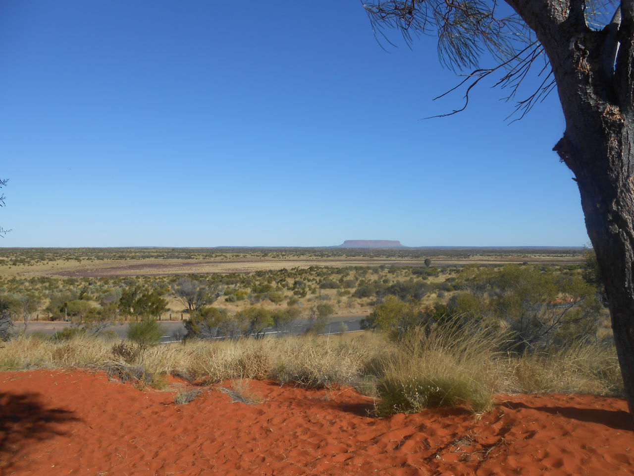 Erstmal rauf auf eine rote Sanddüne stapfen. Rechts sieht man die Salzseen und links schimmert der Mount Connor natürlich auch rot im staubigen Outback. Von den Einheimischen wird der Mount Connor Fooluro genannt. Schon manch ein Tourist hat sich geirrt und den Uluru gut 100 Kilometer zu früh gesehen.Der Mount Conner ist unwesentlich höher als Uluru und besteht aus dem gleichen Arkose Sandstein wie Kata Tjuta und Uluru.