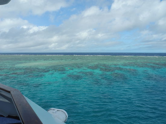 Die Buchung im Reisebuero in Darwin hat super geklappt. Wir werden um 7:30 Uhr mit dem Bus vom Hotel abgeholt und danach zum Hafen gebracht, wo ein Schnellboot auf uns wartet. Hier gibt es vor allem für die Taucher eine gründliche Einweisung bis wir das Reef erreichen.