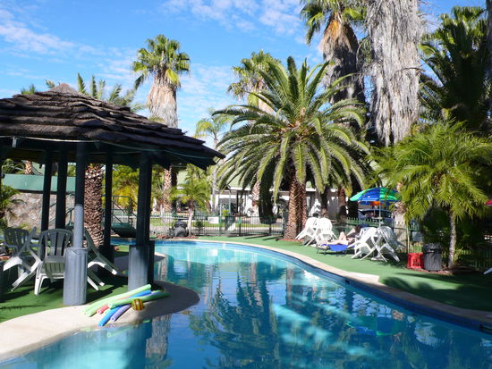 Wir erreichen Alice Springs zur Mittagszeit und fahren mit dem Taxi zum Hotel Palms Garden. Die Anlage besteht aus vielen Bungalows, da es sehr heiß ist, genießen wir erst mal den Pool. Am späten Nachmittag gehen wir zur Innenstadt, welche wie ausgestorben wirkt, denn in Australien ist der 1. Mai auch ein Feiertag. Uns fallen die vielen Aboriginals auf, die hier herum sitzen. In einem Einkaufscenter entdecken wir schließlich noch Woolworth, der sehr gut sortiert ist und kaufen fürs Abendessen ein, es gibt Wurstsalat.