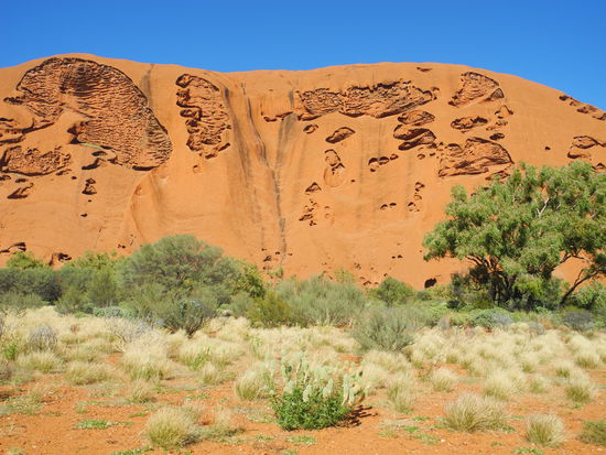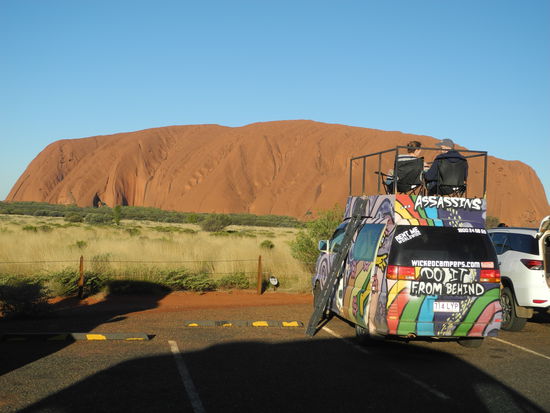 Im Nationalpark des Ayers Rock ist Camping und übernachten verboten, deshalb müssen alle Besucher in Yulara übernachten. Wir informieren uns im Visitor Center und checken dann im Campground ein. Im Moment ist Nebensaison, also genügend Platz für alle. Am nächsten Tag wollen wir mal sehen, ob ein Aufstieg möglich ist. Außerdem haben wir uns vorgenommen den Felsen zu Fuß zu umrunden. Der Walk ist 10,6 km lang und dauert ungefähr drei Stunden.