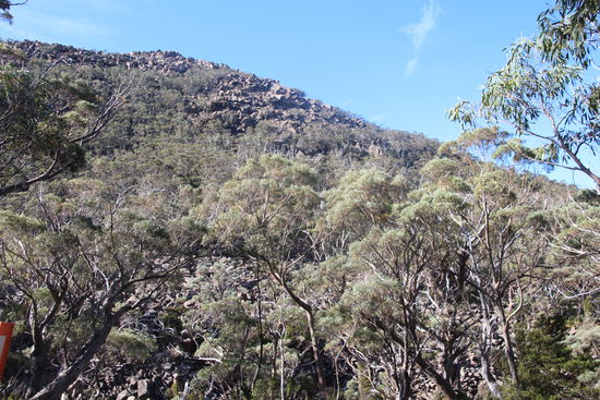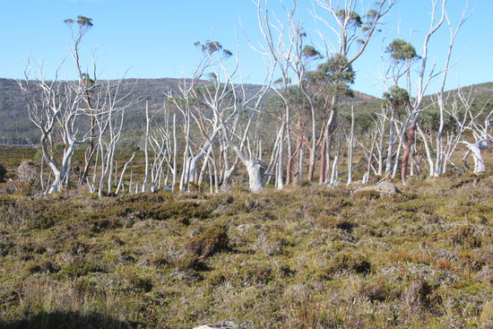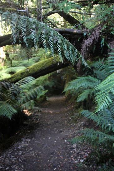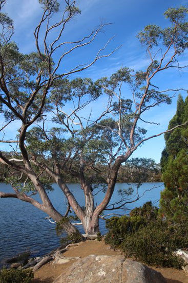 Und so ist es. Diesen Tag widmen wir dem Mt.Field National Park, der nicht nur ein riesiges Areal umfasst, sondern an seiner Spitze über 1000 Meter hoch liegt. Die Erkundung ist sowohl per pedes auf hervorragend ausgebauten Wanderwegen als auch wegen der Distanzen per Pkw möglich. Auf der Lake Dobson Road, vorbei am gleichnamigen See sind es bis zum Gipfel immerhin 16 km. Also zunächst zu Fuß. Eukalyptusbäume, z. T. wahre Riesen bilden die Basis des Waldes. Die ältesten sollen schon gestanden haben, als die ersten Europäer ins Land kamen (also ca. 1780 - 1800). Man schätzt, dass diese tall-trees bis zu 400 Jahre alt werden können. Da der Wind es zulässt, sind wir ständig von einem angenehmen Eukalyptusgeruch umgeben. Obwohl wir die Wipfel (der kleineren Bäume) immer wieder absuchen, sind Koalas leider nicht zu entdecken. Zusammen mit den Eukalyptusbäumen dominieren Farne -z.T. etliche Meter hoch- den Bewuchs diese Urwaldes.